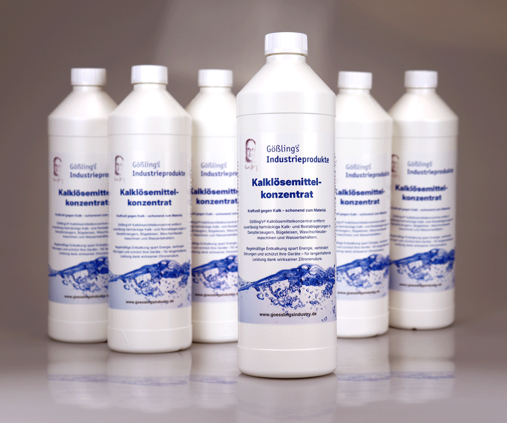 6 Flaschen Gößling's® Textilpflegetechnik - Kalklösemittel im Sparpack. Perfekt auf Maschinen der Wäschereitechnik abgestimmt, löst auch harte Verkalkungen. 1 Liter verdünnen Sie auf bis zu 4 Liter Wasser, d. h. Sie haben insgesamt 5 Liter Kalklösemittel. Löst effektiv und materialschonend sämtliche Kalkablagerungen und auch Rost. Das Lösemittel ist lebensmittelunbedenklich und kann daher auch zum Entkalken Ihrer Kaffeemaschine verwendet werden.